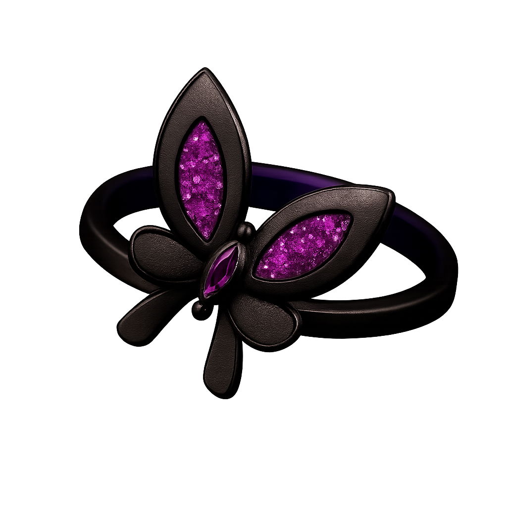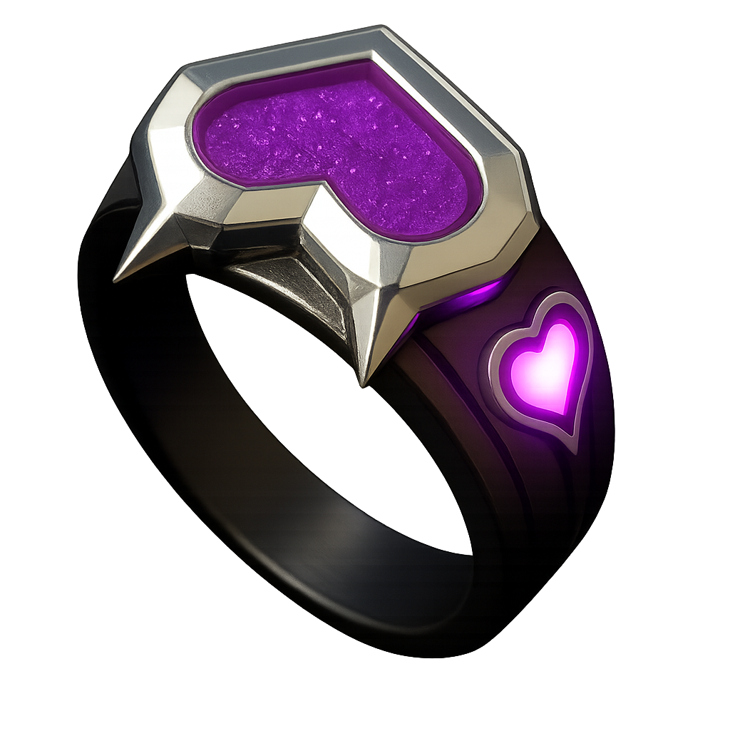 Dirancang khusus untuk para pendukung setia Clove, cincin ini menampilkan perpaduan logam gelap yang elegan dengan aksen batu permata ungu yang khas. Sempurna untuk menambah sentuhan Valorant pada koleksi merchandise, kostum cosplay, atau sebagai simbol identitas Anda sebagai penggemar agen Controller yang unik ini.